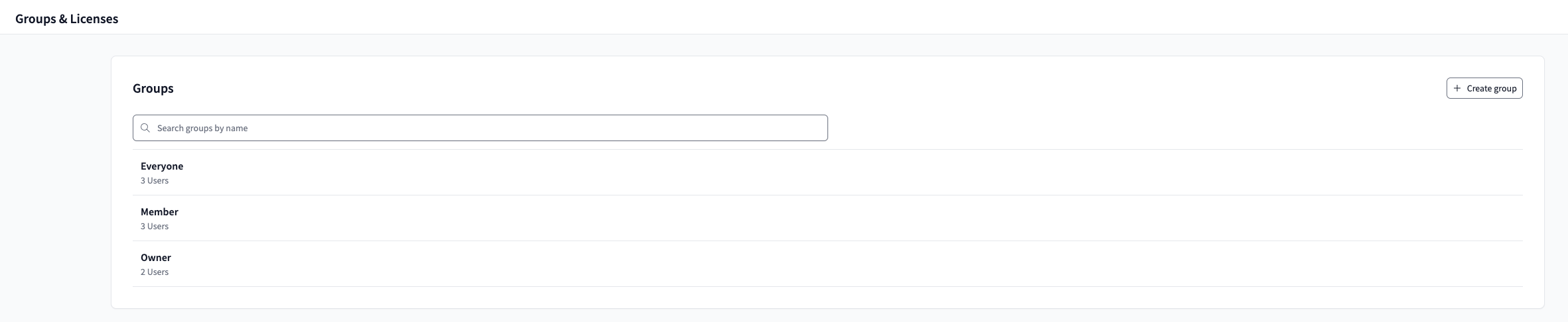Navigating to Groups & Licenses page in dbt Cloud, you’ll see three default groups — Everyone, Member, and Owner. There’s also an option to create your own groups on the top right.