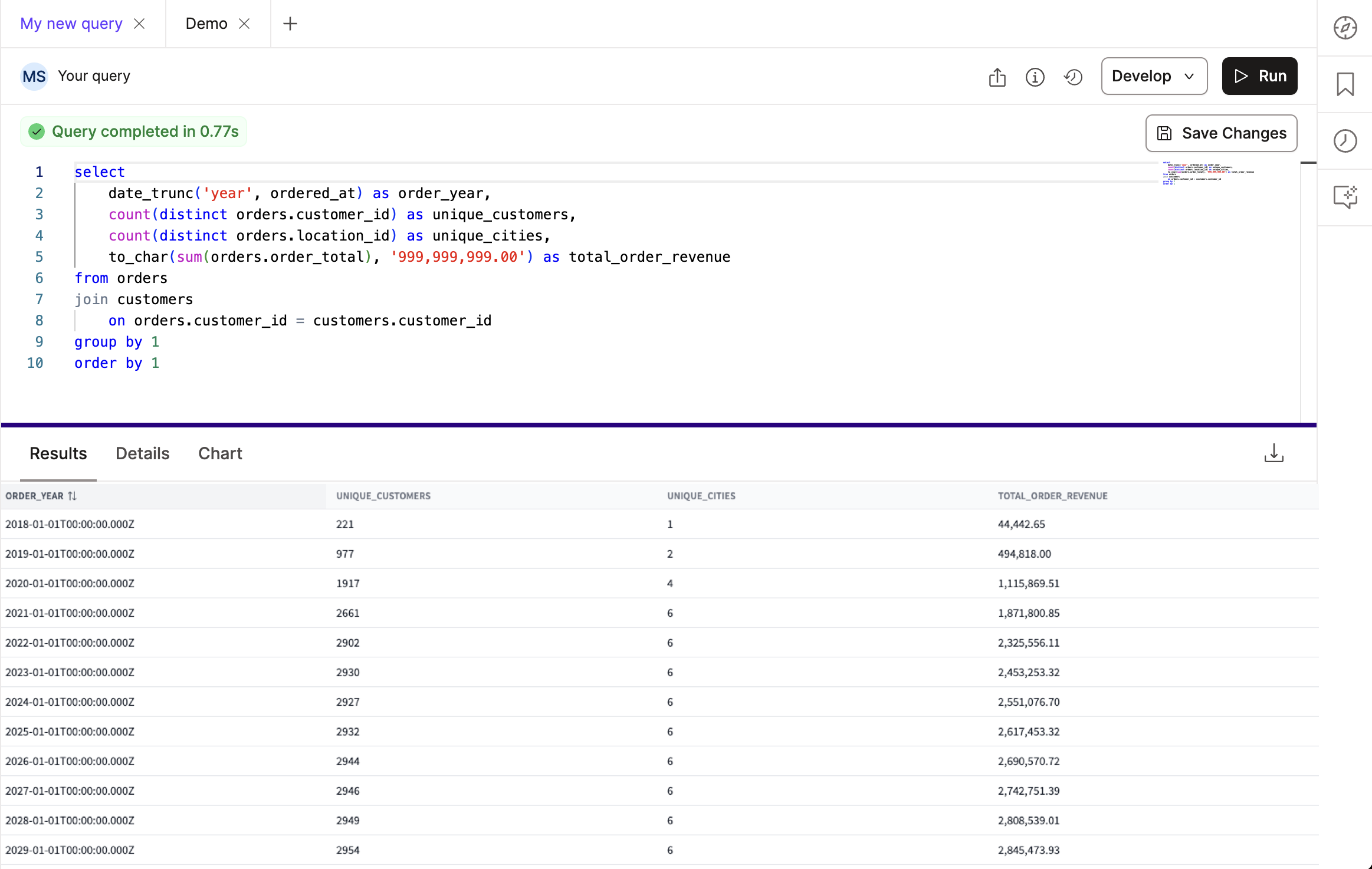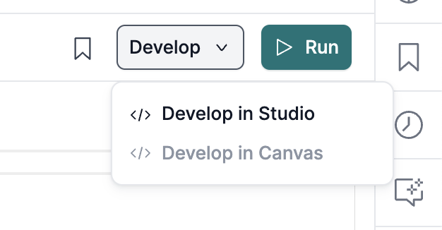 - Develop: Open the Studio IDE or Canvas to continue editing your SQL query.